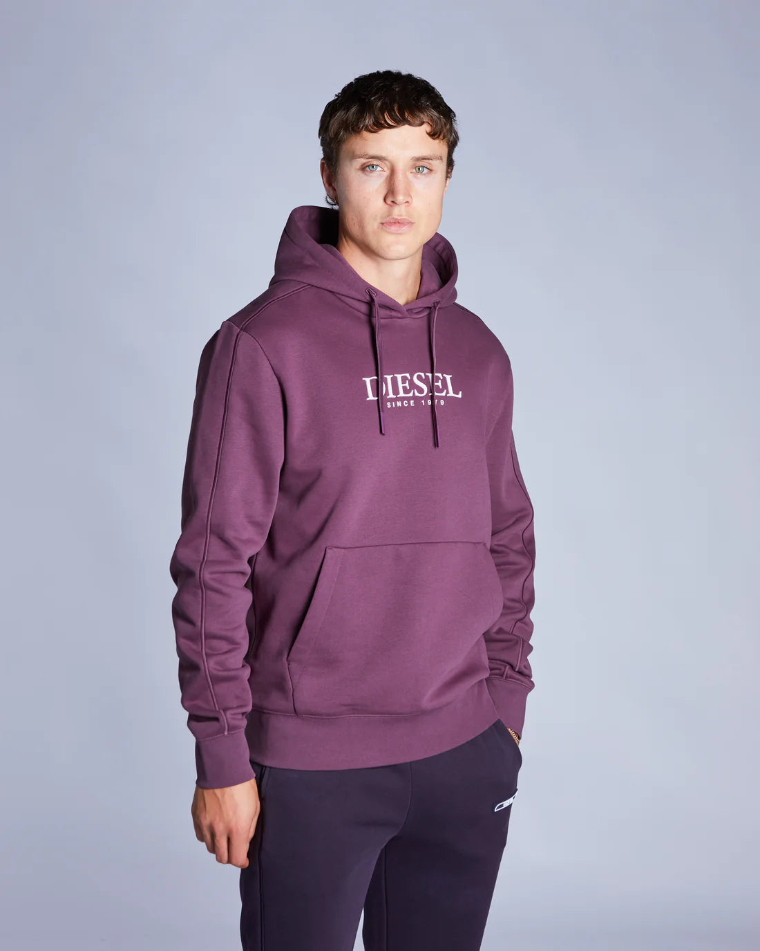 A super soft sweat fleece hoodie with a DIESEL raised rubber print on the chest & branded drawcords. Team it with one of our Classic Track t-shirts & jogger for a complete Classic Track look.
