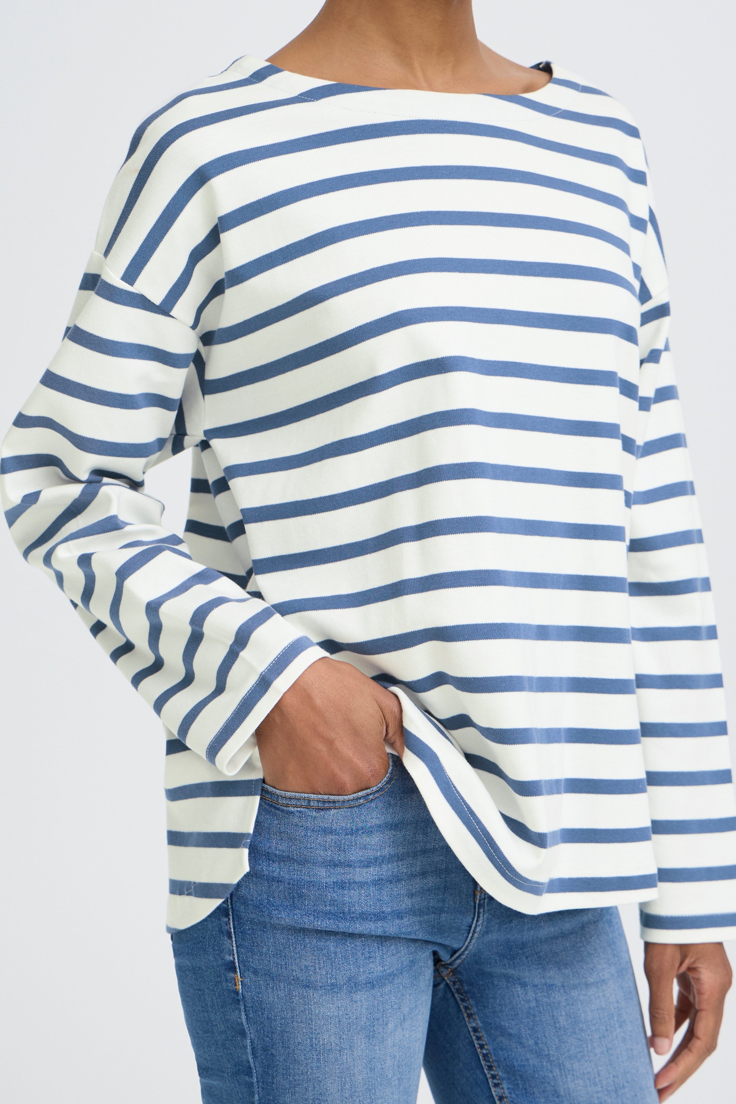 Effortless elegance meets everyday comfort in this Ramsi Pullover. The relaxed boat neck and drop sleeves create a flattering, contemporary silhouette that works beautifully layered or worn solo. All-over stripes add visual interest and versatility, pairing seamlessly with your existing wardrobe. Crafted for those who appreciate understated style without compromising on quality, this pullover transitions effortlessly from casual weekends to relaxed workdays. A timeless piece that deserves a permanent place in your closet.