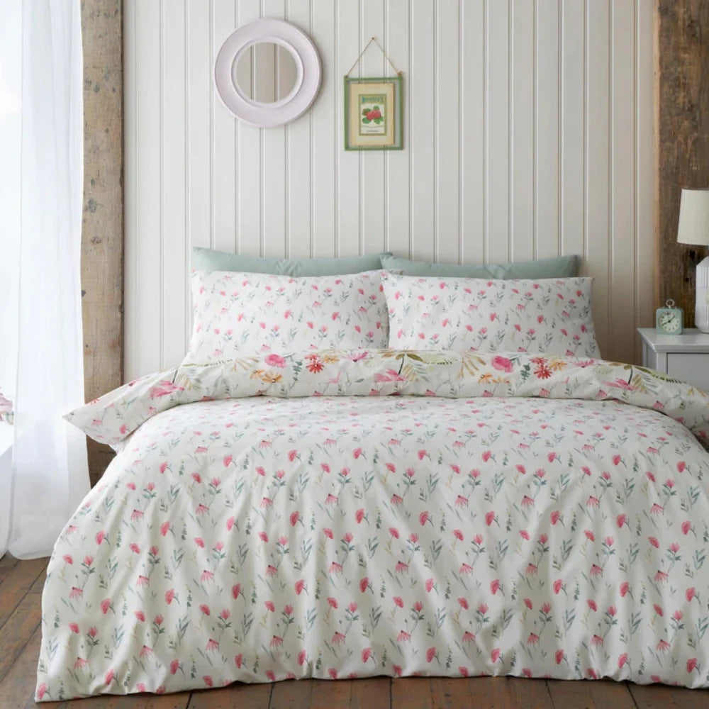 Experience a fusion of elegance and comfort with the Ella Poppy Cream Quilt Set This vibrant bedding set, with its colorful floral pattern, breathes life into any bedroom decor. Crafted from a smooth cotton blend, it offers the perfect balance of softness and breathability, ensuring a restful night's sleep. The intricate floral motifs add a touch of sophistication, while the reversible design enhances versatility. This quilt set, including a duvet cover and matching pillowcases, is not just a bedding set, it's an upgrade to your bedroom aesthetics.