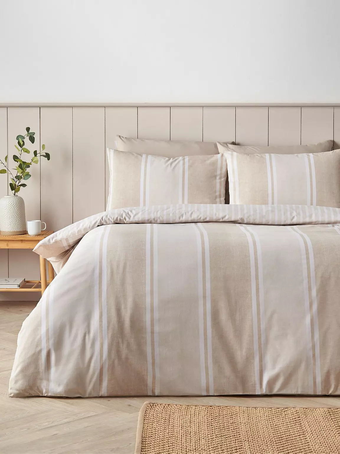 Catherine Lansfield is renowned for style and quality - Add classic style to your room, subtle textured bands in calming tones bring a style refresh. Fully reversible, this bedlinen offers two relaxed stripe looks in one. Created from easy-care polyester and soft cotton, blended for everyday use.