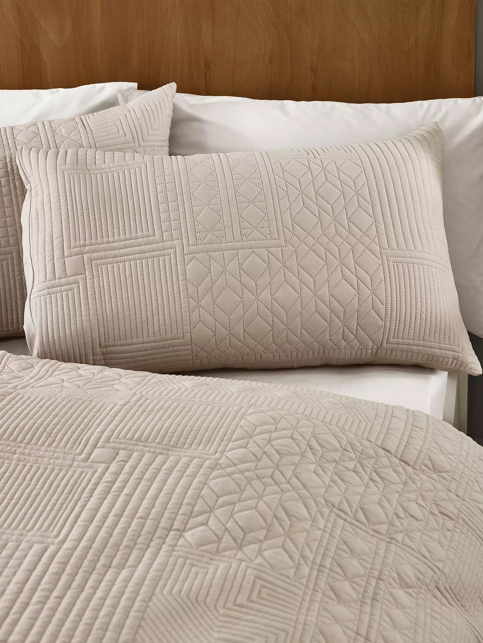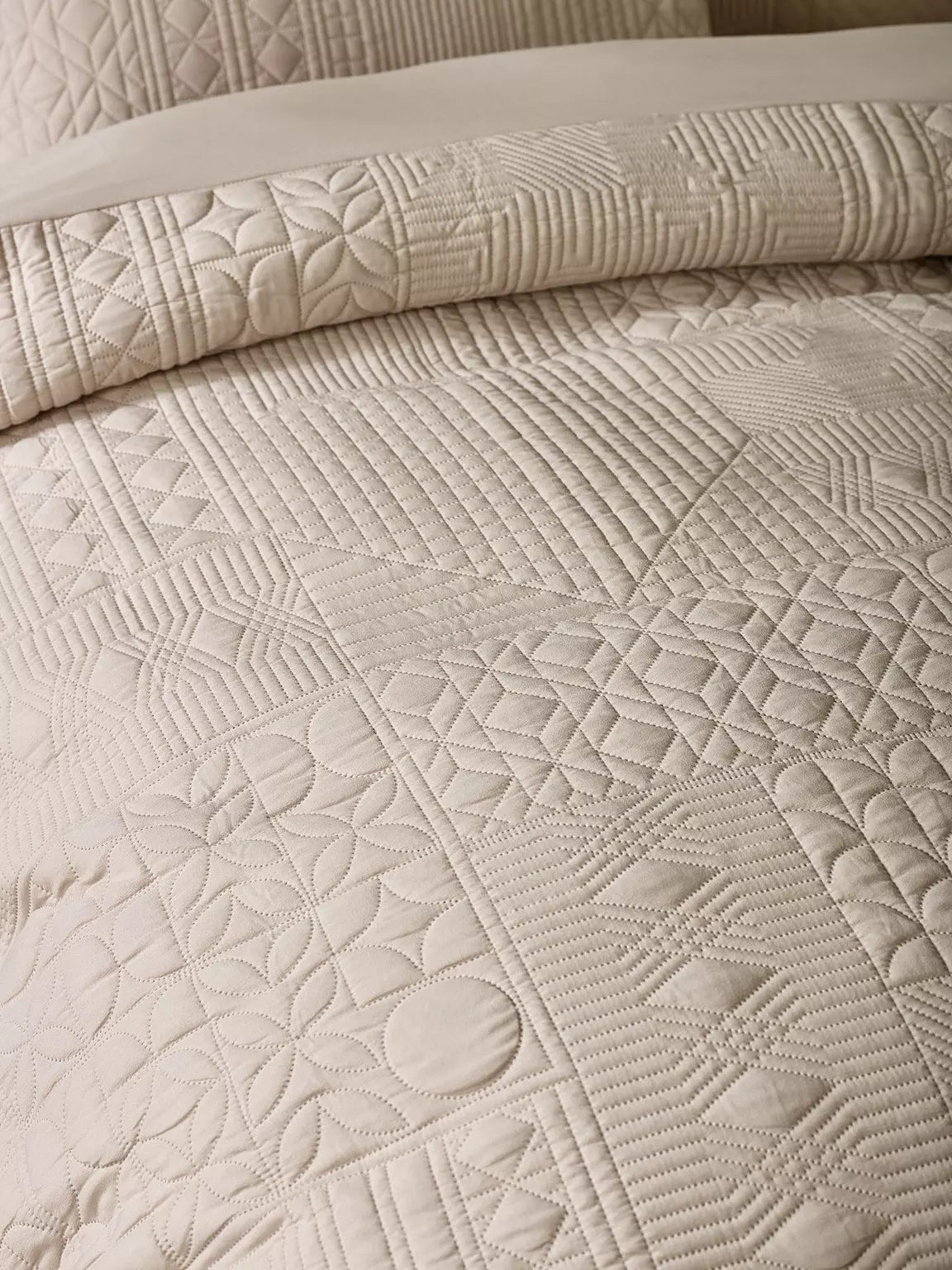 In a versatile natural colourway, it uses pinsonic stitching to create a geometric, patchwork-inspired visual. Overlapping squares sit alongside diamonds and stripes, and it’s backed by a smooth and soft reverse, so you’ll love immersing yourself in the comfort it provides after a long day.