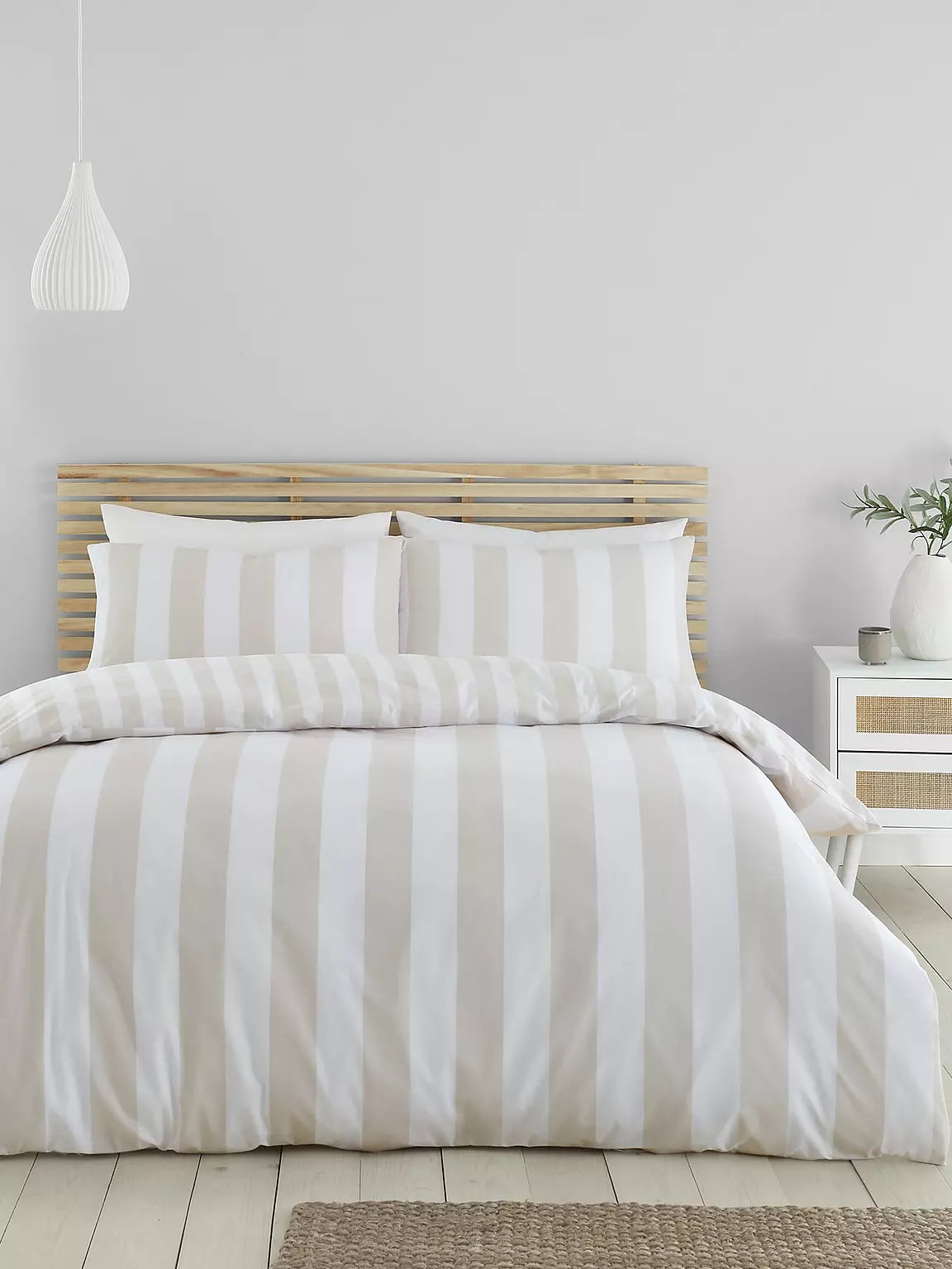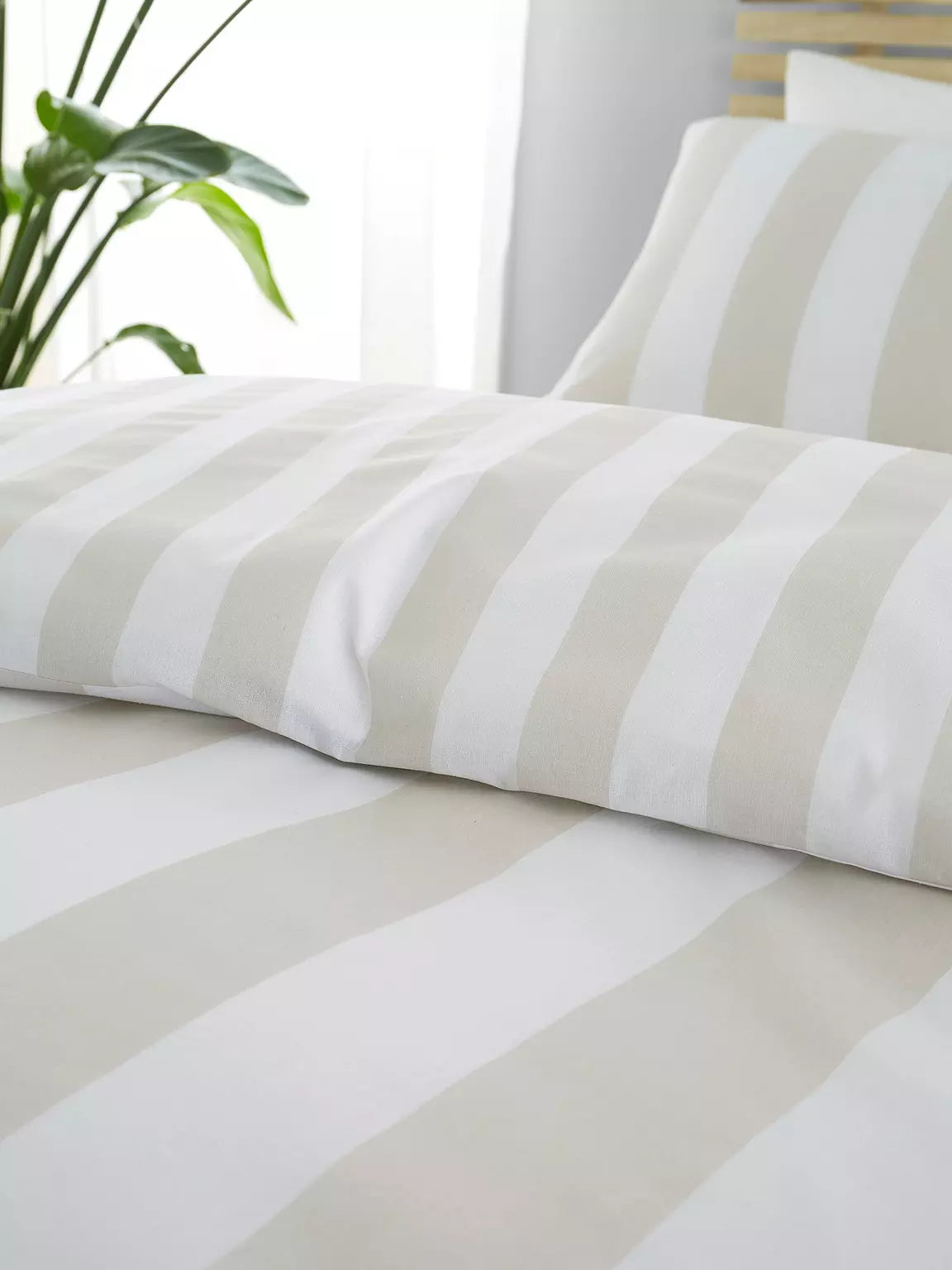 The Cove Stripe natural duvet cover set by Catherine Lansfield flaunts a charming contemporary take on classic striped motifs.
