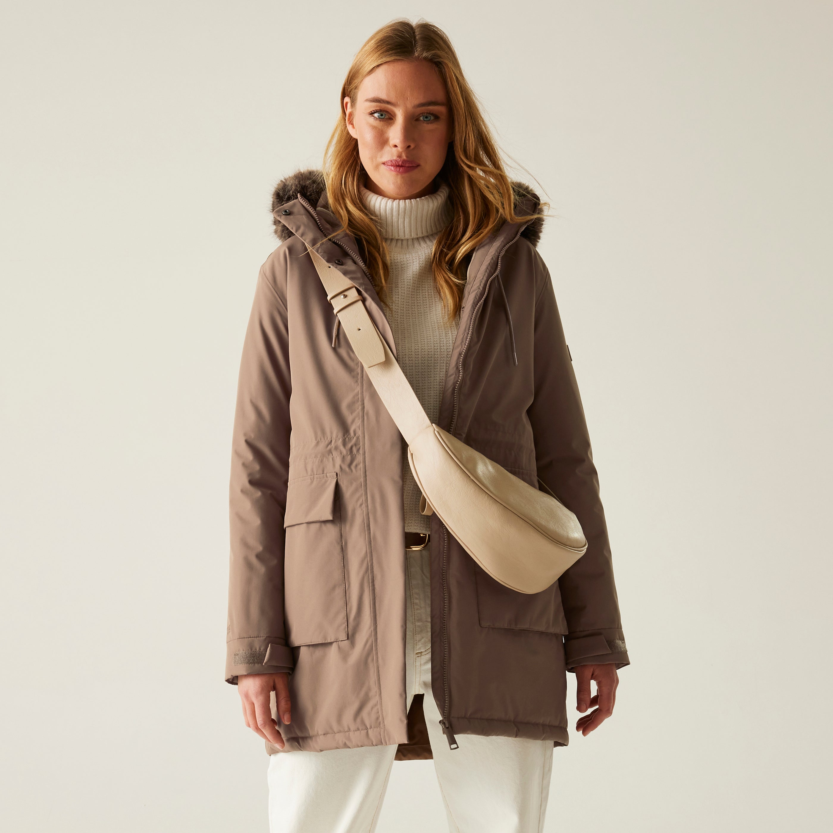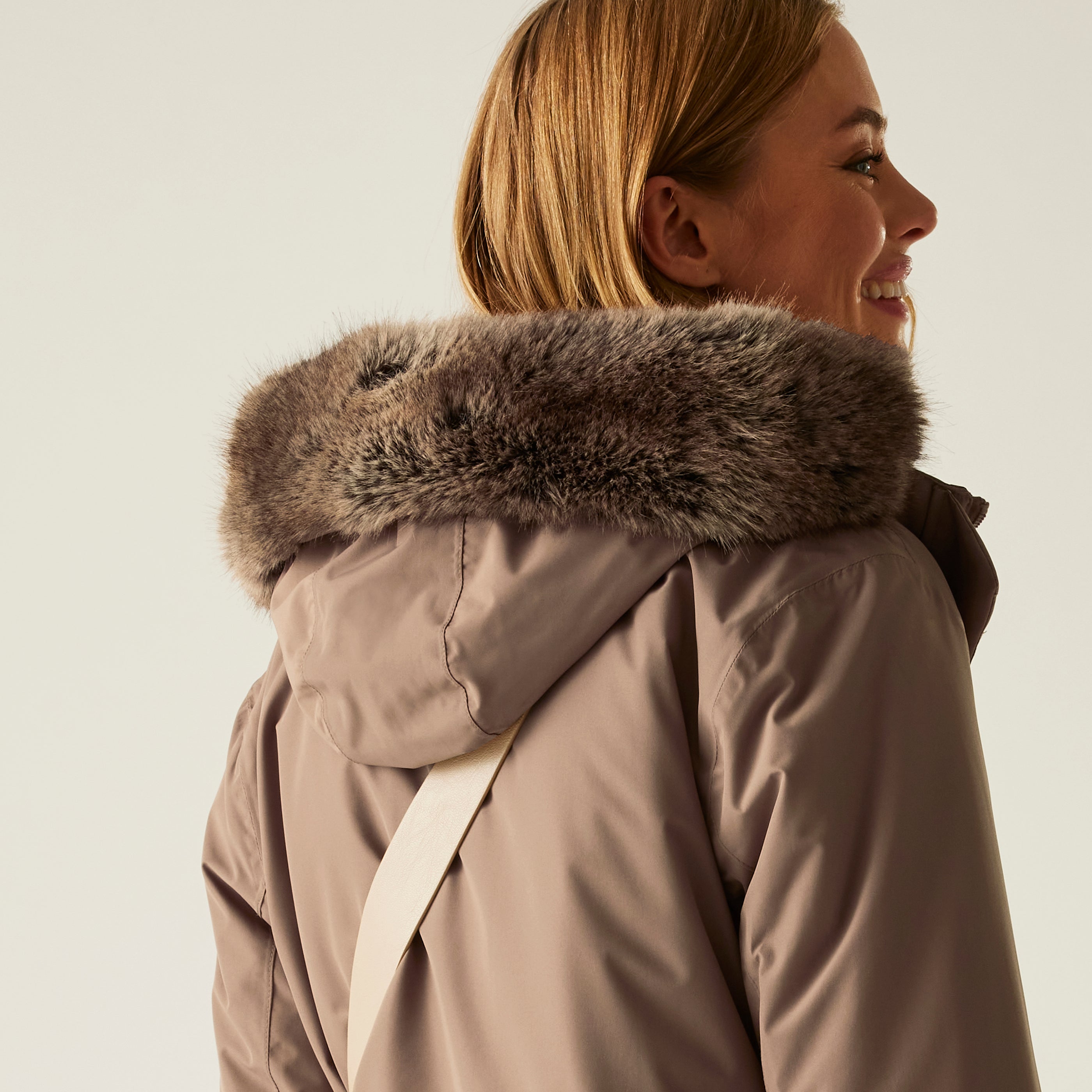 Waterproof, insulated and effortlessly chic, our Sabinka women's jacket is a must-have for stylish outdoor wear. Designed with peached polyester and Isotex 10000 technology, it ensures total weather protection. Thermoguard insulation and a fleece-lined hood with removable faux fur trim add warmth. The drawcord waist, patch pockets and adjustable cuffs enhance practicality, making it perfect for rainy days or casual outings.