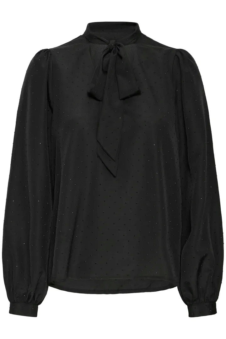 The Ikaja Bow Shirt in Meteorite features a refined high collar and elegant billowy sleeves, combining classic femininity with a modern silhouette. Crafted for a graceful drape, this blouse balances sophistication and comfort, making it a versatile choice for both professional and stylish casual settings.