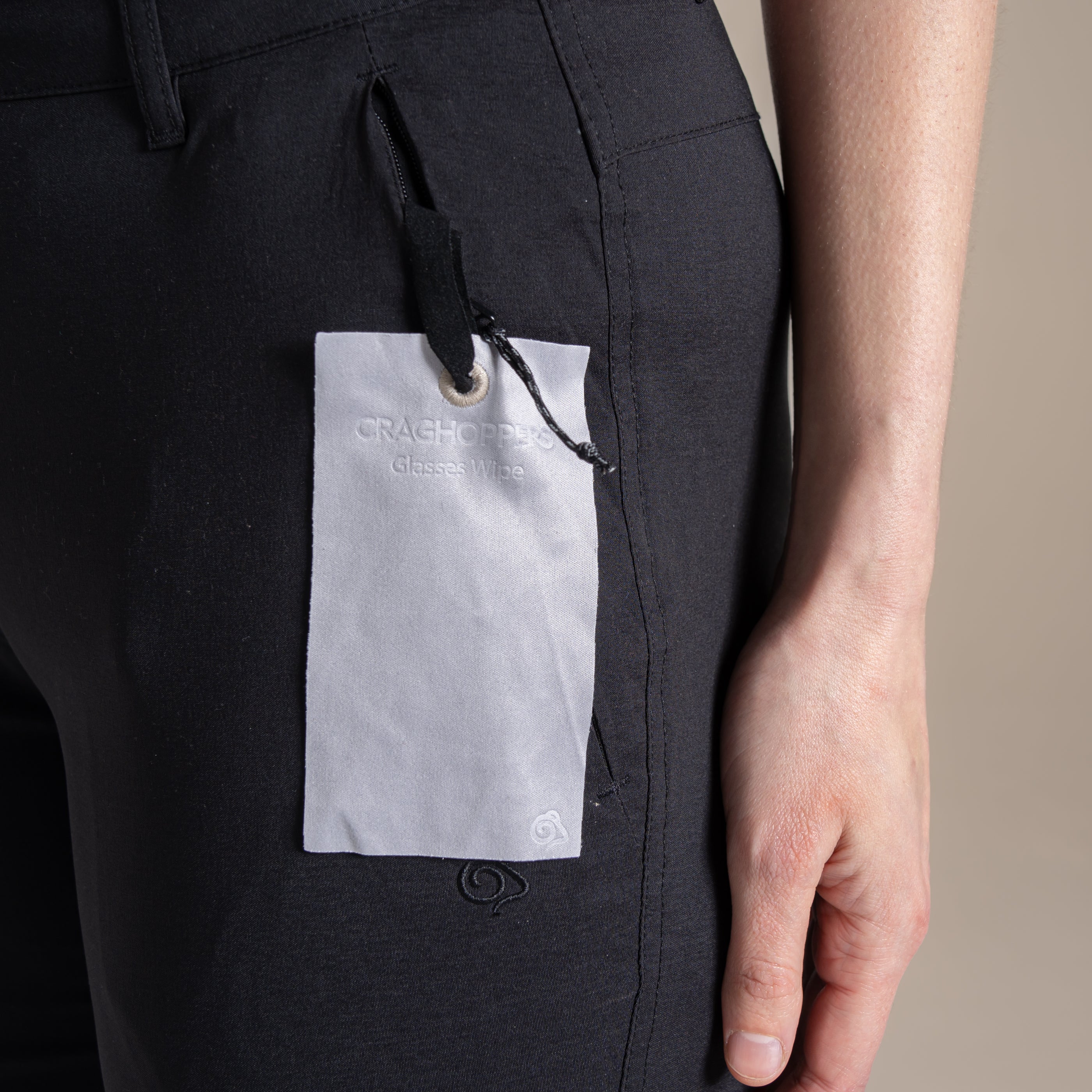 Main fabric: 96% recycled nylon polyamide, 4% elastane / Pocket bags: 65% recycled polyester, 35% cotton