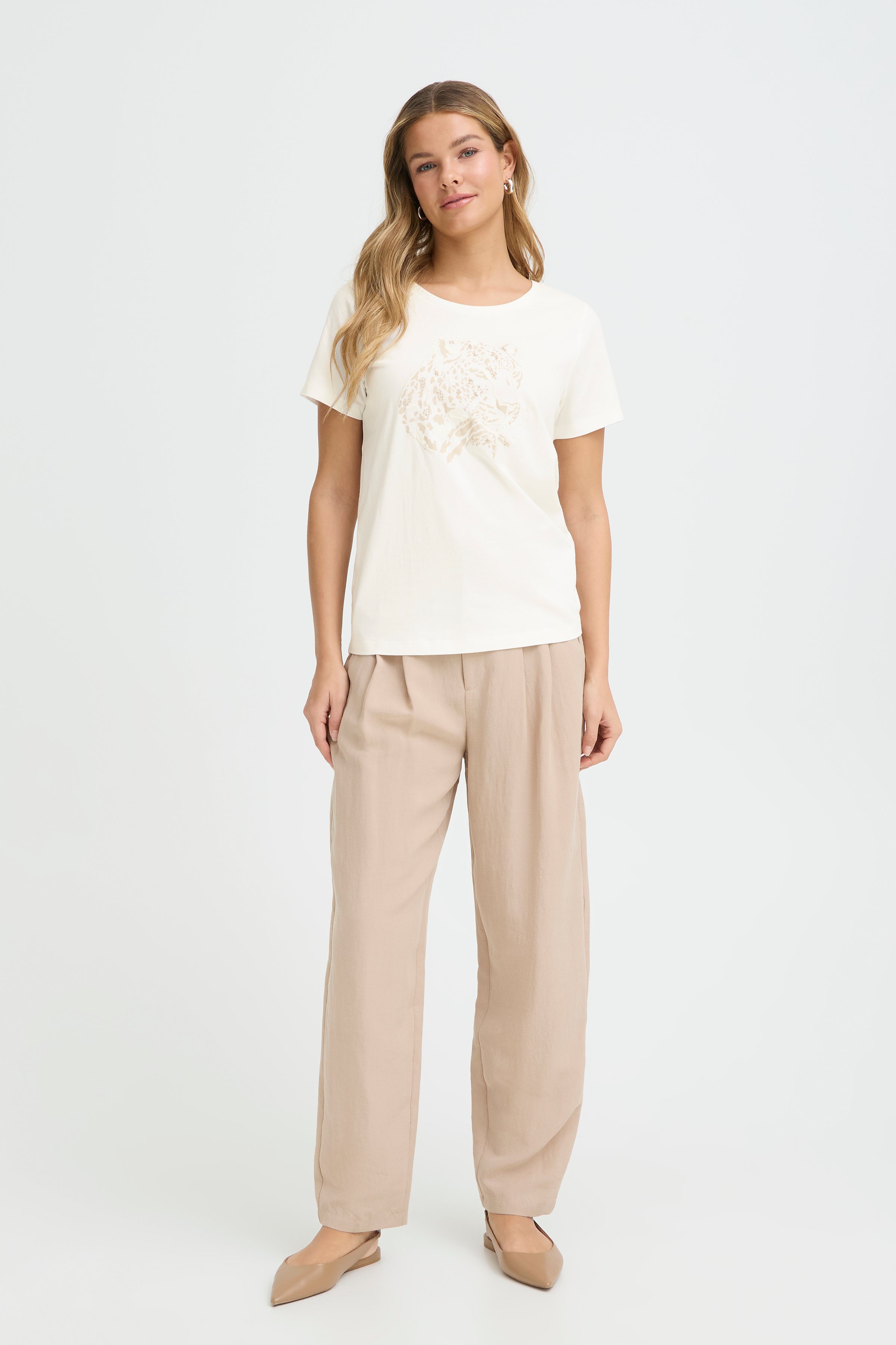 Make a statement with the Evani Tee, where understated elegance meets wild style. This relaxed-fit essential features a bold cheetah print that commands attention without demanding formality—perfect for those who refuse to blend in. Crafted in soft whisper white, it's the kind of piece that works as hard at brunch as it does at casual hangouts. Throw it on and let your personality do the talking.