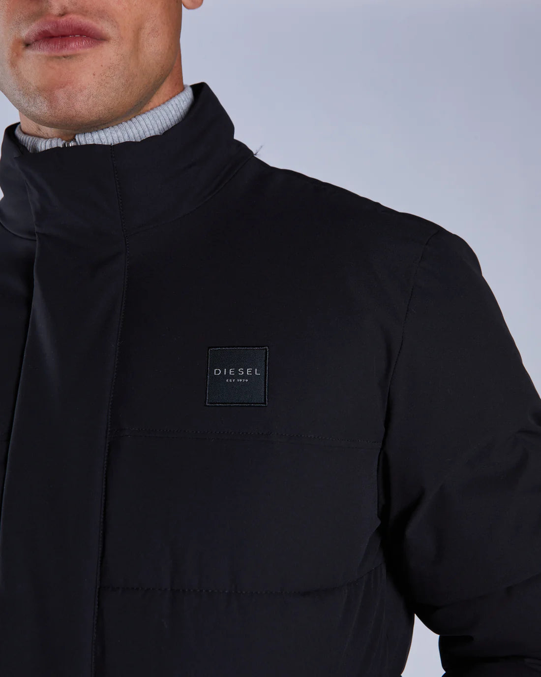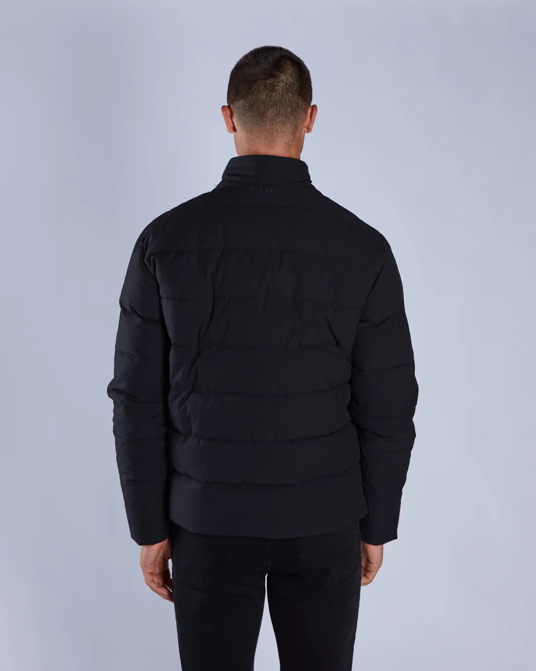 This mid-weight jacket is a must have for a smarter look this Autumn/Winter season. Crafted with a matte polyester shell and recycled polyester filling. Featuring a concealed zip closure to the front, zipped front pockets, one interior pocket, a stand collar with an internal rib detail and ribbed concealed cuffs. It has our premium Diesel embroidered badge on chest.