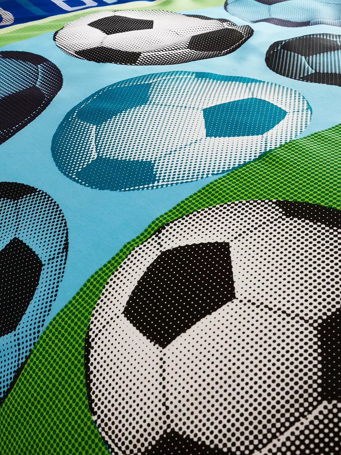 Give their room a fresh footy flip with this cool duvet cover and pillowcase set from Catherine Lansfield.