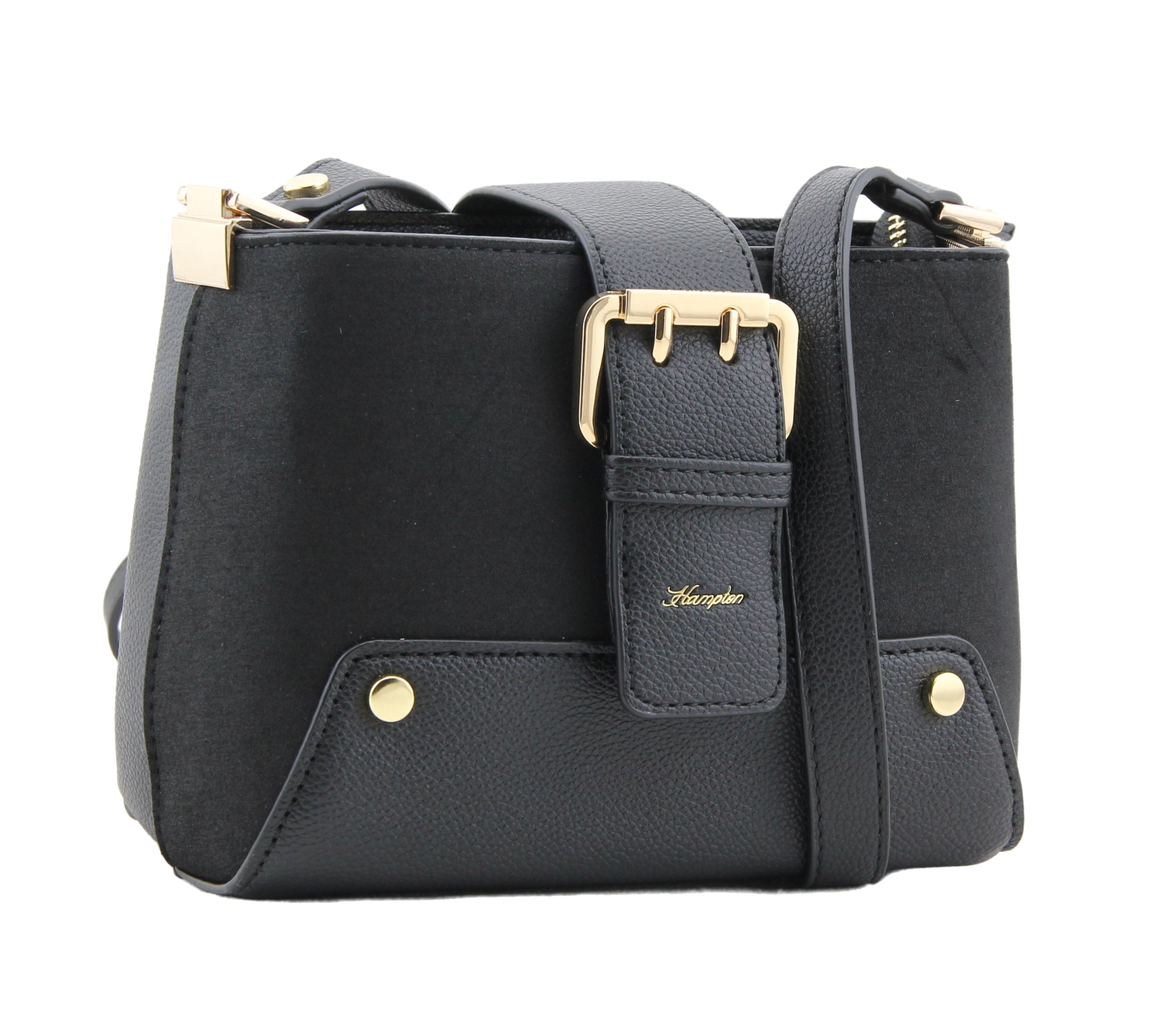 The Lilou Small Crossbody Bag features a sophisticated blend of two fabric types, creating a refined textural contrast. Equipped with a secure buckle closure, this compact design offers both elegance and practicality. Perfectly sized for essentials, it combines expert craftsmanship with versatile style for everyday wear.