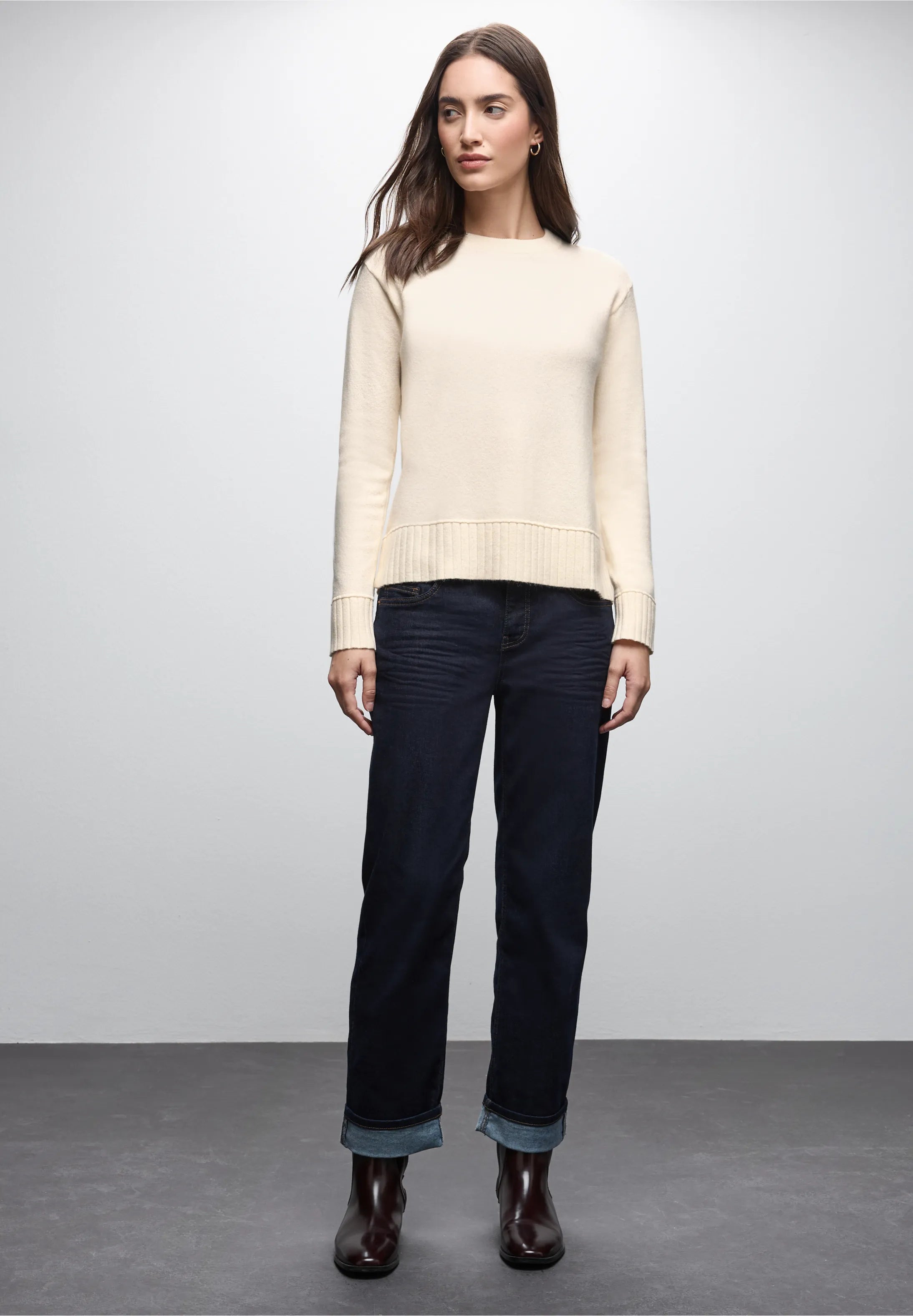 This women's round-neck sweater from Street One is a timeless classic for everyday wear. With its comfortable cut, side slits, and soft feel, it's versatile and a reliable favorite for feminine everyday outfits.