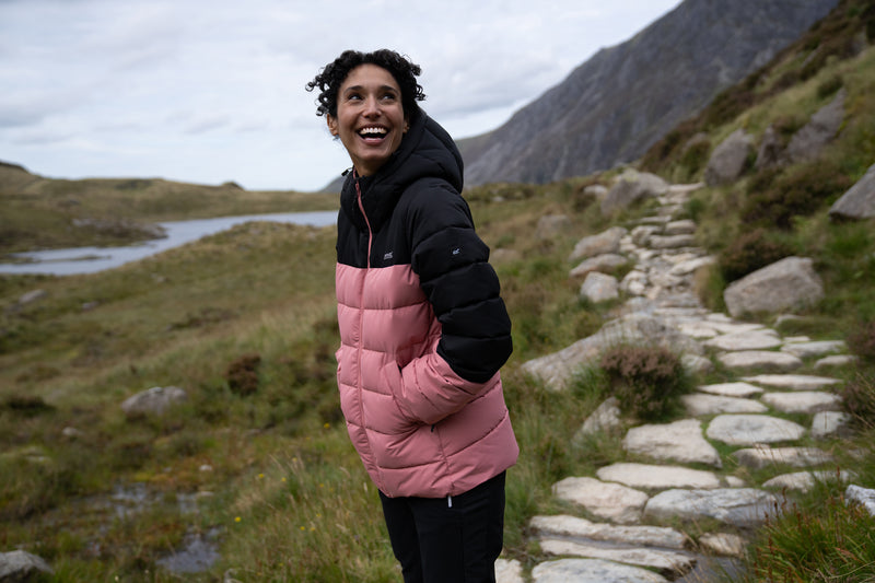 The Aldthorn women's jacket features premium synthetic down insulation to provide exceptional warmth without adding bulk. A water-repellent finish helps protect against unexpected showers, while a grown-on hood with adjusters offers extra coverage. Blending style and performance, it's a reliable choice for staying warm and comfortable on cold, damp days.