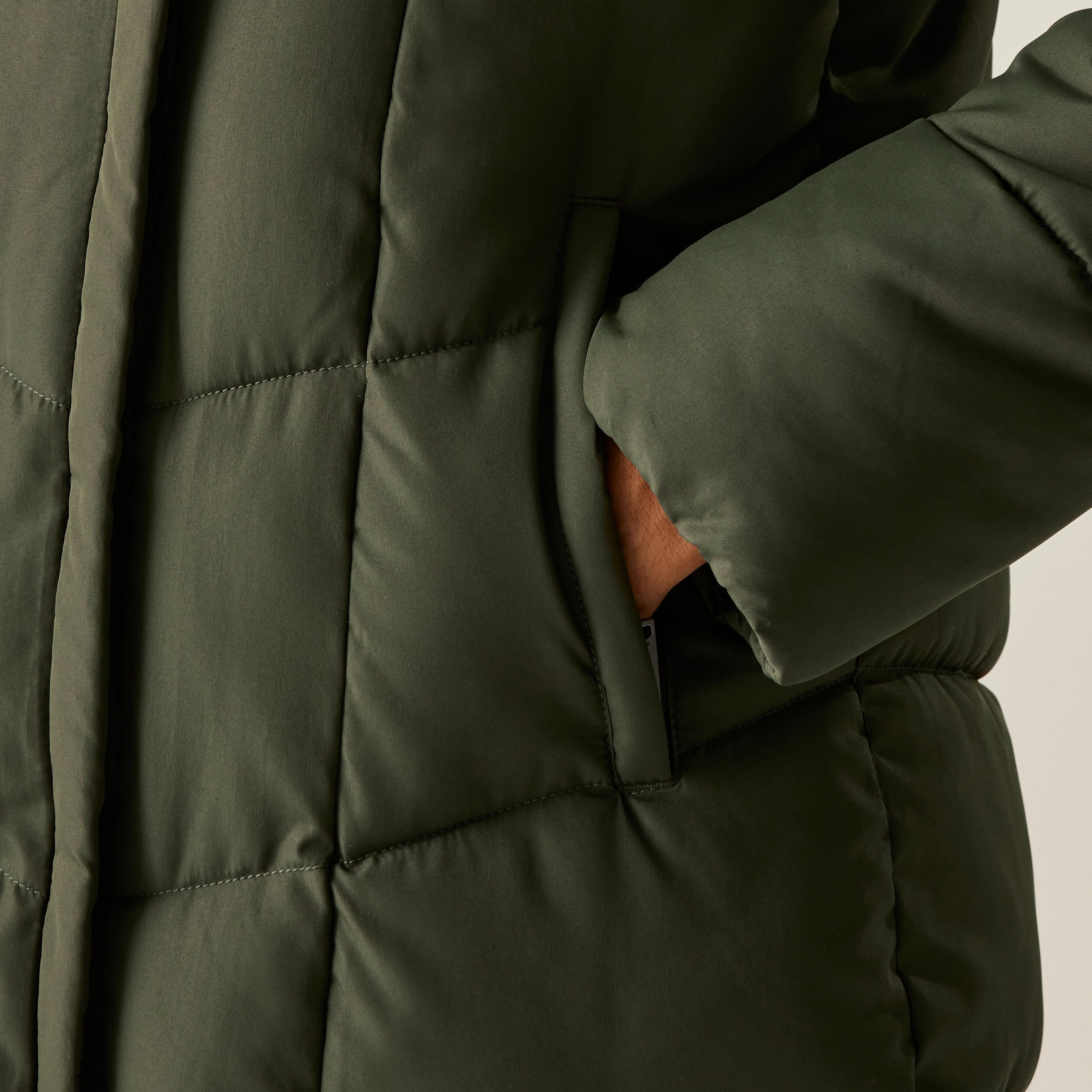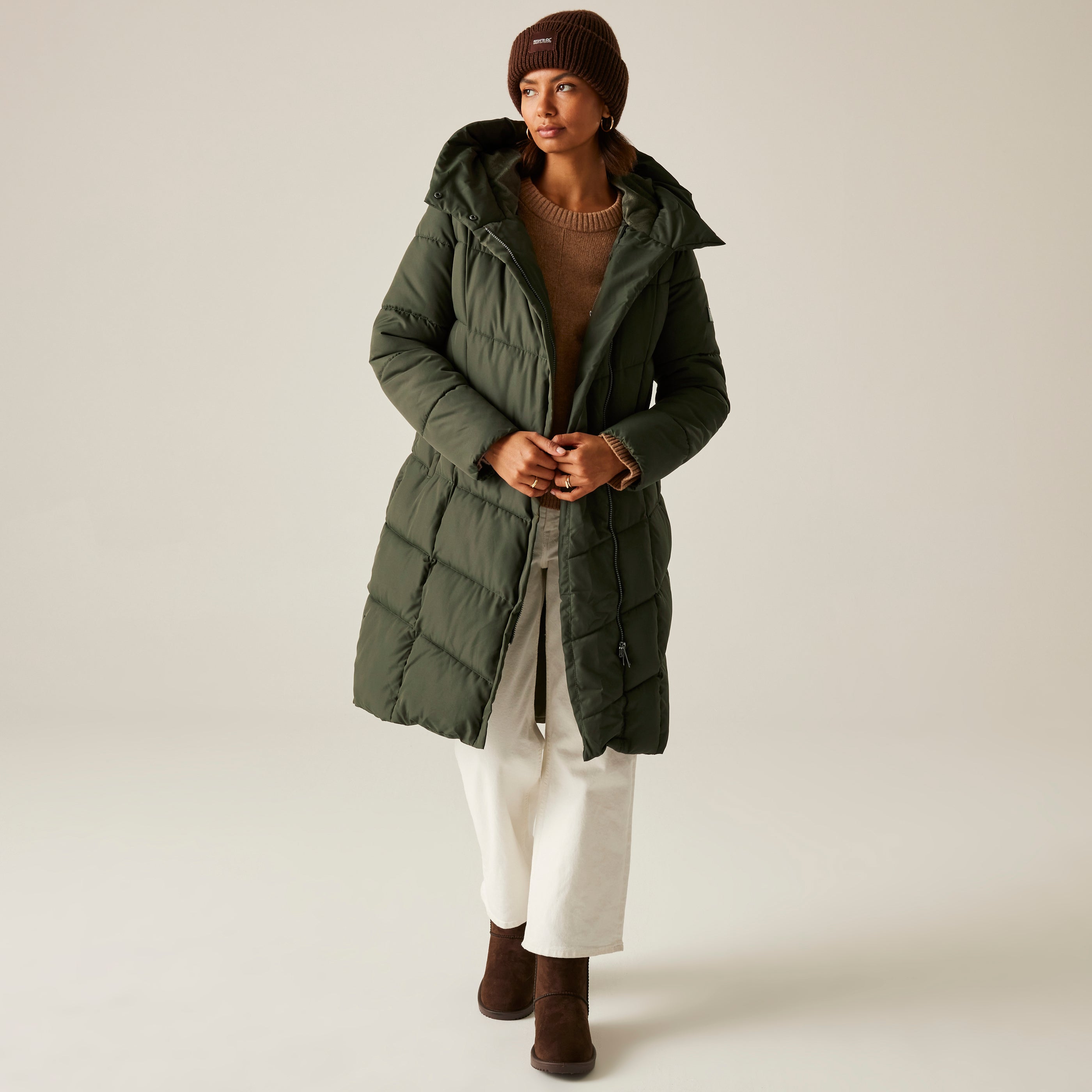 Super stylish and cosy, our Nurie ladies jacket is a must-have for the fashion conscious. Crafted from 100% polyester with a durable water-repellent finish, this jacket ensures protection against the elements. Featuring medium-weight, feather-free down insulation and a taffeta lining, it provides optimal warmth and comfort. The longer length and fold-down collar add style. With practicality in mind, it includes multiple pockets. Perfect whether out for a stroll or enjoying a weekend getaway.