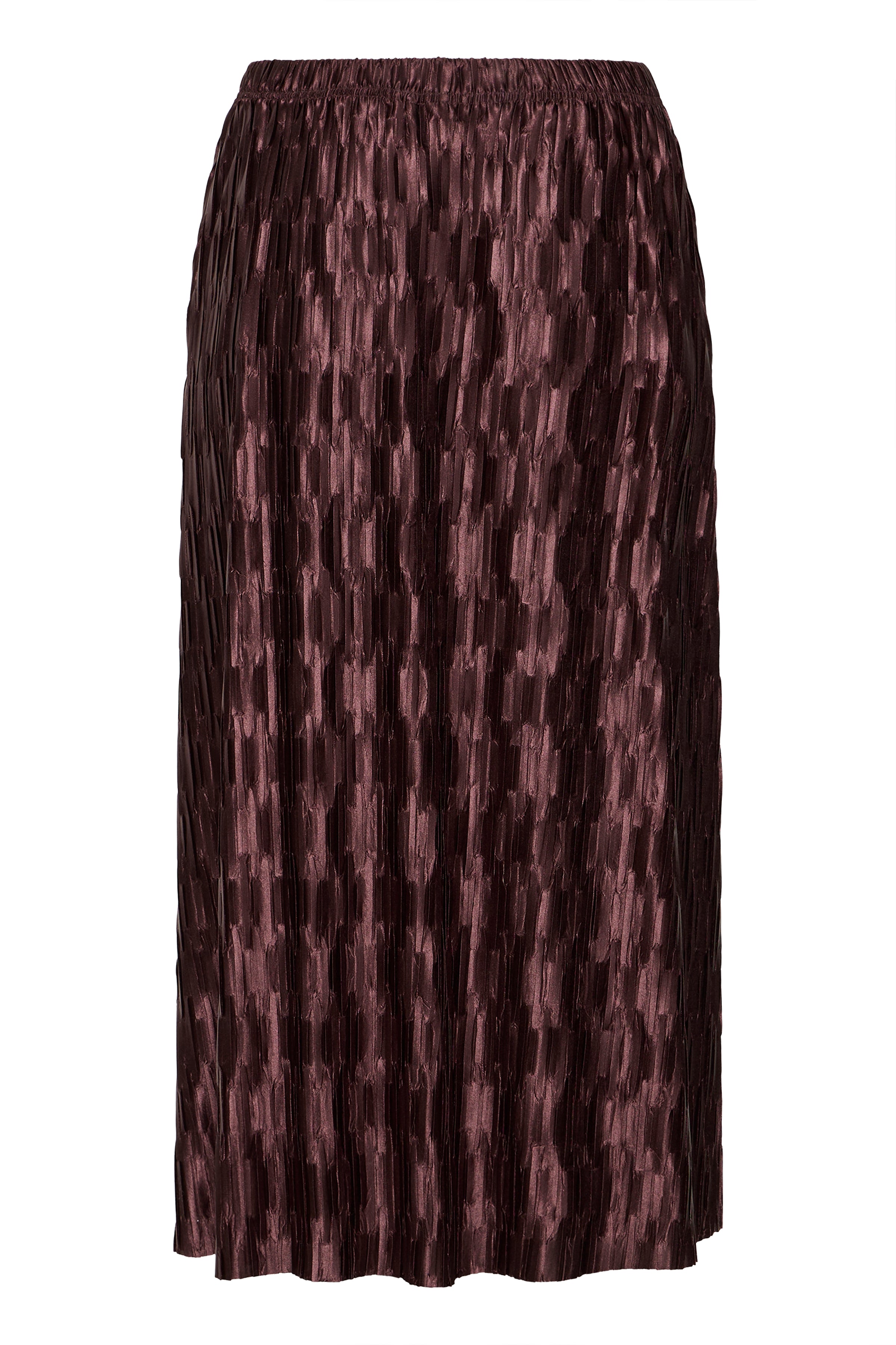 The Uvika Skirt combines understated elegance with practical comfort. Crafted from a shimmery woven fabric, this midi-length piece catches the light beautifully while maintaining a sophisticated appearance. The elasticated waistband ensures a secure, comfortable fit throughout the day, making it equally suited to casual outings or more polished occasions. The rich fudge tone provides versatility, pairing effortlessly with neutral tops or bolder statement pieces. A timeless addition to any wardrobe.