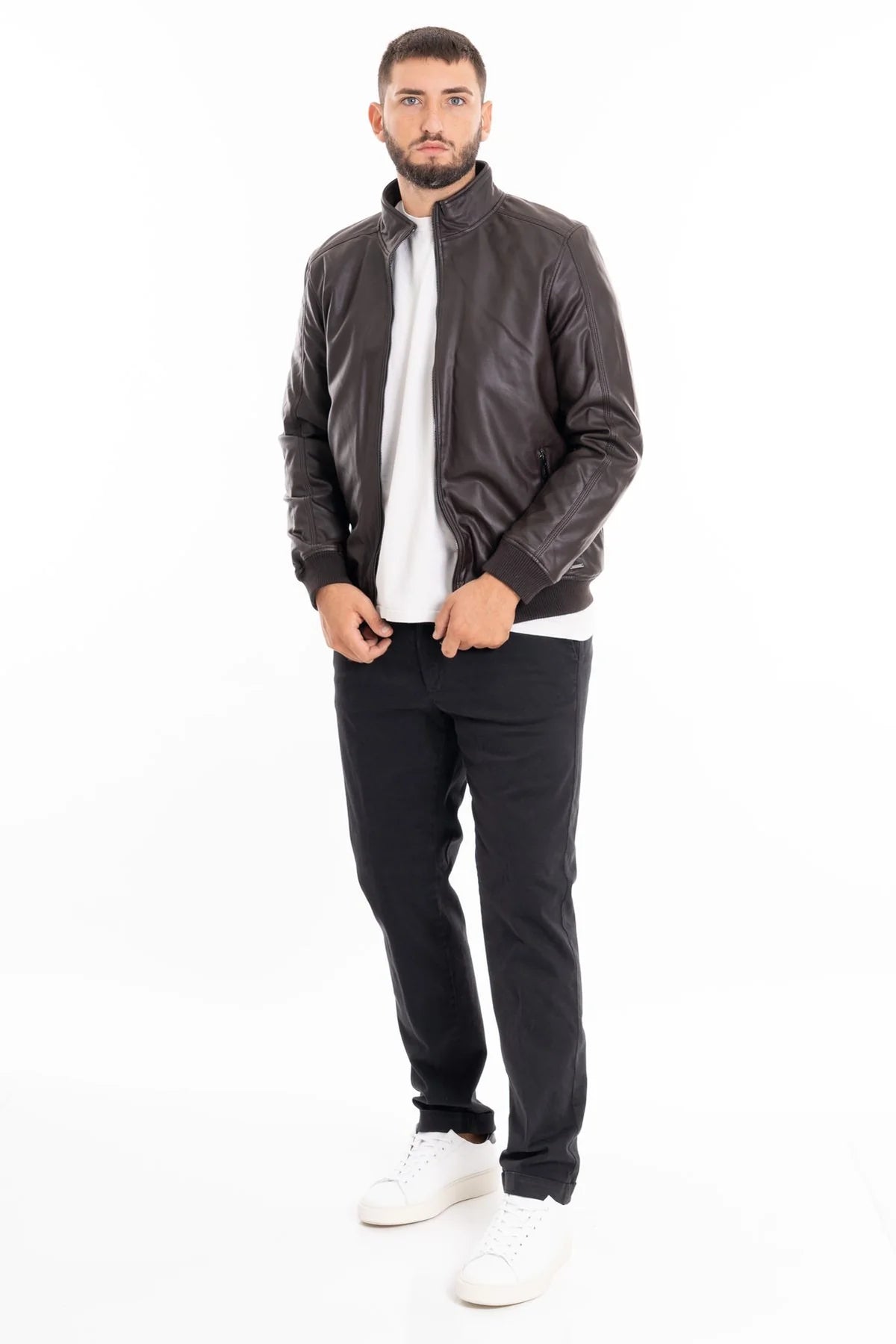 Protect yourself from the winter cold with the zip-up leather jacket from MARKUP.
