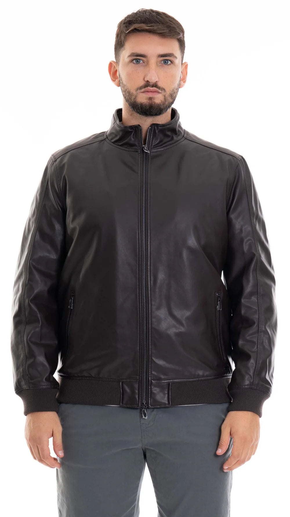 Protect yourself from the winter cold with the zip-up leather jacket from MARKUP.
