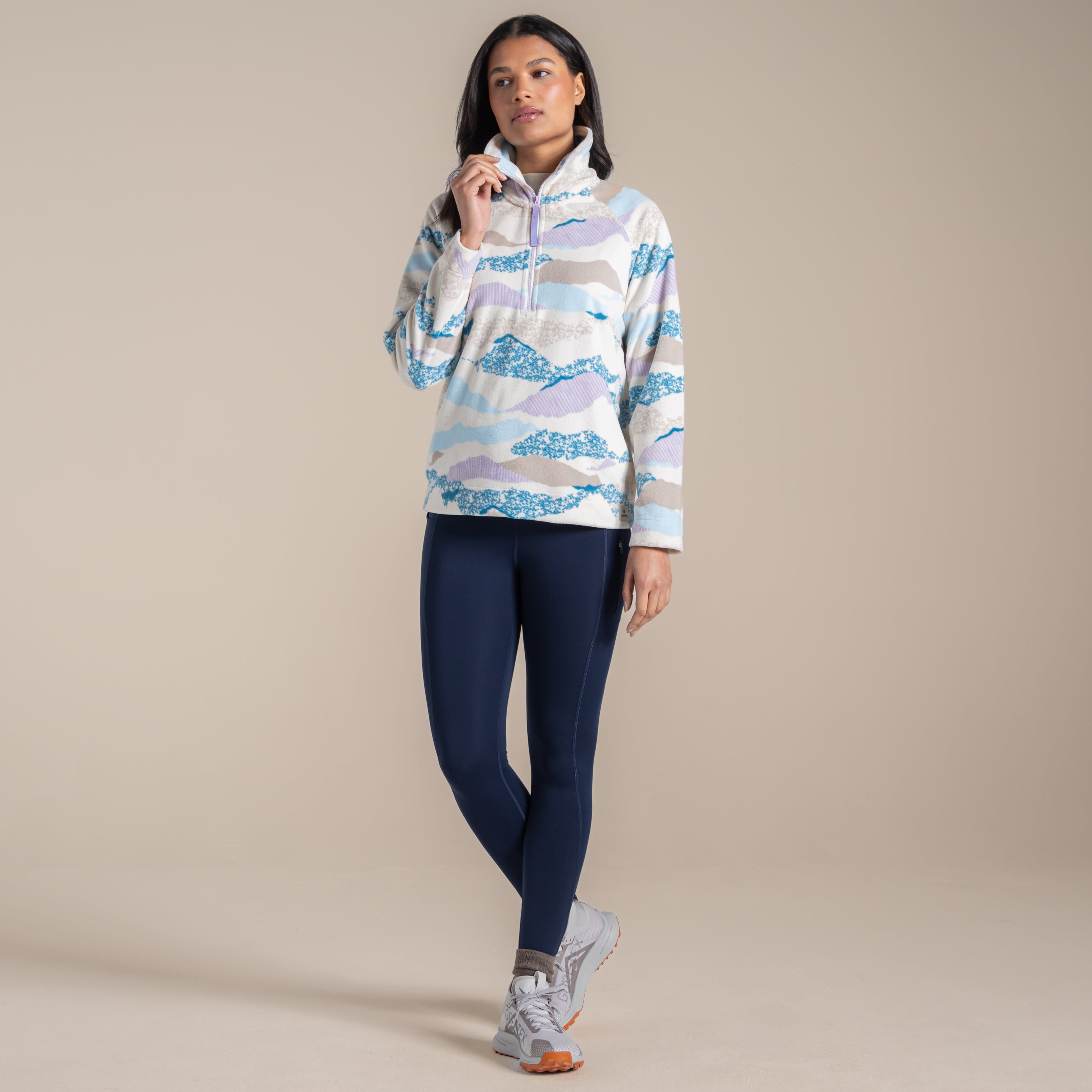 Made from printed microfleece featuring a Wainwright-influenced stylised mountain design, Annjela acts as a stylish cover up when conditions cool.