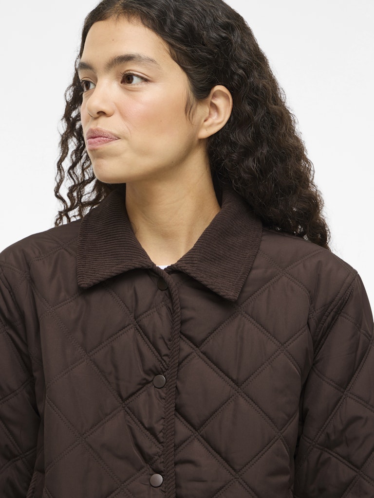 Quila Long Sleeve Corduroy Quilted Short Jacket | Coffee Bean